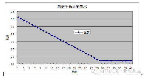 通風的目標是保持雞舍溫度處于合理范圍內,充分發(fā)揮雞群的生產性能。下例圖表說明了商品肉雞獲得最佳生產性能(料肉比和體重)對溫度的要求。從下圖可以看出,雞群日齡越小,溫度越重要,但是雞群的通風量應隨著溫度的周期性變化而變化,以滿足雞群的實際需要。