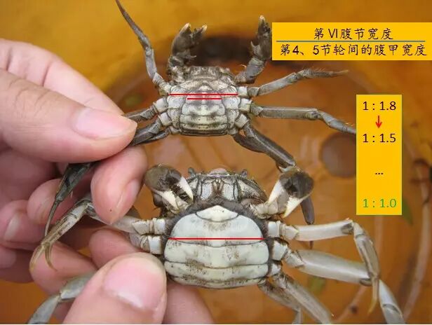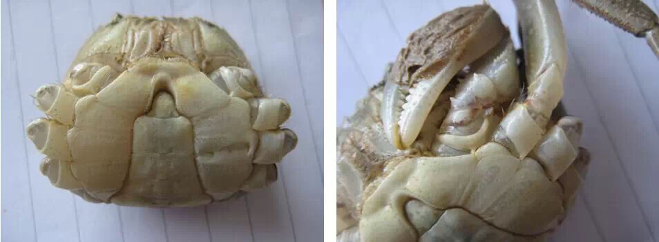 其次,注意河蟹蛻殼期間的巡塘工作。河蟹在白晝和夜間都會(huì)蛻殼,主要在子夜至次日8時(shí)這段時(shí)間內(nèi)進(jìn)行,黎明時(shí)分為高峰時(shí)段。通過對河蟹舊殼的收集、分析,可以獲得許多有用的信息,比如河蟹舊殼的厚重與否(河蟹新殼完成前會(huì)從老殼的內(nèi)表皮層吸收鈣離子,舊殼較重則預(yù)示新殼會(huì)發(fā)生軟殼)、河蟹還可以蛻幾殼(第Ⅵ腹節(jié)寬度與第4、5節(jié)輪間的寬度比例是具有數(shù)字經(jīng)驗(yàn))以及蛻殼完整度。另外,巡塘者也可以觀察具有蛻殼異象的河蟹,并采用相應(yīng)的應(yīng)對措施,比如細(xì)菌感染。